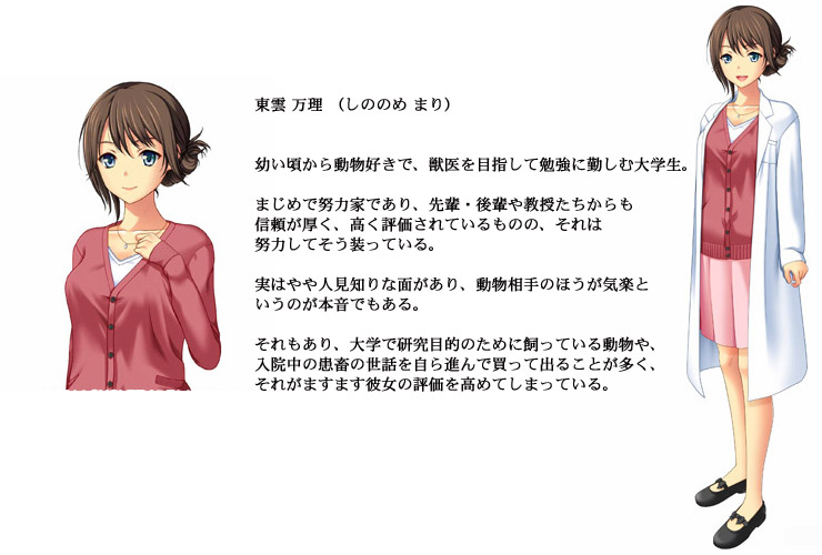 東雲万理 (しののめ まり) は幼い頃からの夢である獣医師になるべく、大学生活を過ごしていた。