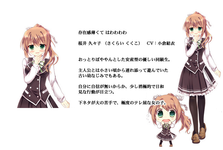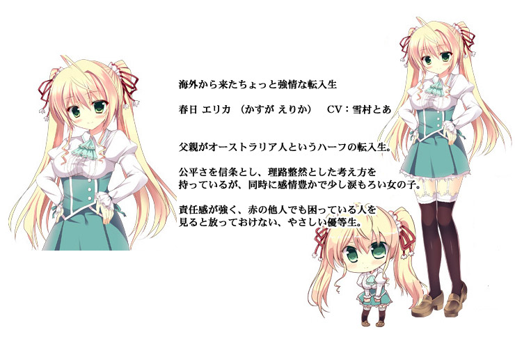 主人公と5人のヒロインたちがラブコメする、萌えの王道である学園モノ。 OP主題歌は榊原ゆいさん、キャラクターボイスも人気声優さんたちが担当し、第一作ながら力の入った作品となっている。 今後のさらなる情報にも期待! ■ キャラクター