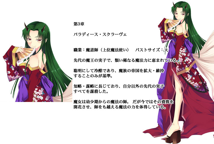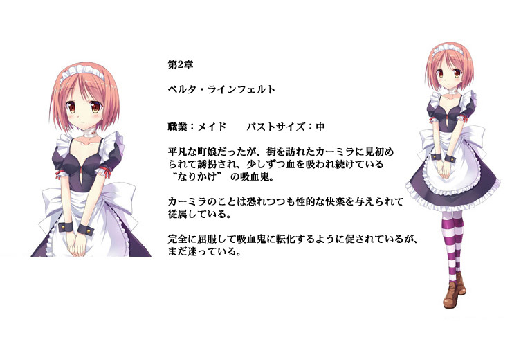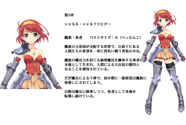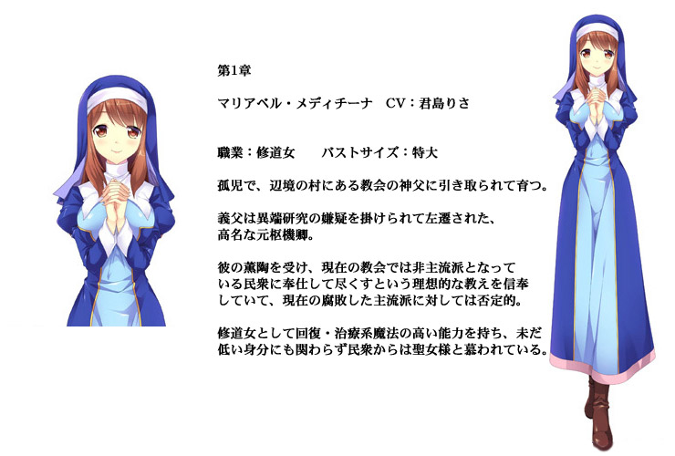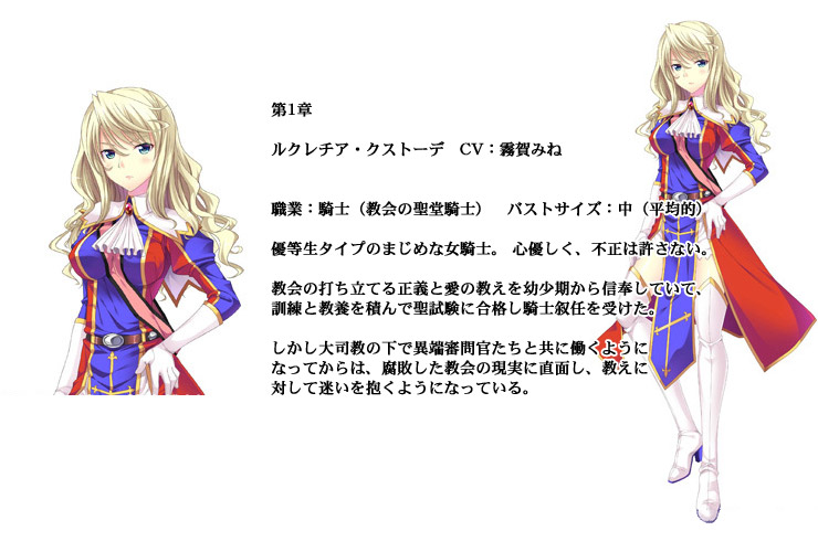 第1章 【聖騎士・淫辱】 腐敗した教会の “魔女狩り” と その背後に蠢く陰謀に巻き込まれた、神を信じ神に身を捧げた “騎士” と “シスター” 。 汚れを知らない身体に与えられる淫猥な仕打ち。 少女たちの中に芽生えた倒錯的な快楽は、彼女たちを神の道から外れた新たなる世界に導いていく。 第2章 【吸血姫・隷辱】 かつて存在した帝国の離宮であった城館に住み着いた、高貴なる “女吸血鬼” と付き従う “メイド”。 その評判を聞き、一千年ぶりに魔女はかつて住んでいた場所を訪れる。 それが吸血鬼とメイドの関係を変えるキッカケになるとは知らずに……。 第3章 【勇者・哀辱】 “魔王” 率いる魔族が支配する帝国に抗う、人間の希望の星 “勇者”。 そのふたりは共に “魔女” の弟子であり、互いの立場を偽り、それを知らぬまま交流を結んでいた。 魔王は魔族の貴族として、勇者は人間の平民として……。 そして魔王暗殺のため場内に潜入した勇者が囚われ、事実が明らかになった時、避けえぬ凌辱と悲劇が起こる……。 −−−−−−−−−−−−−−−−−−−−−−−−−−−−−−−−−−−−−−−−−−−−−−−−−−−−−−−−−− ■ テレカ画像 ![]() ■ CG