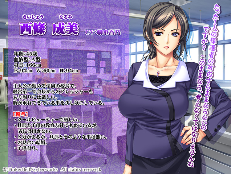 お堅い業績重視の校長・西條成美。 先輩だった保健の先生・山科夏織。