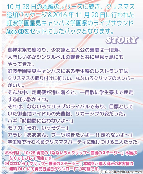 本編をお持ちの方は、「〜星空にメリークリスマス〜」を発売日から無料DLCにて入手できます。