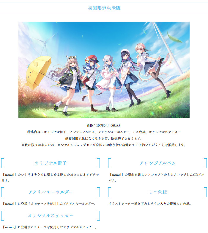 『anemoi』(アネモイ)は、2020年6月26日にKeyより発売された『Summer Pockets REFLECTION BLUE』(サマーポケッツ リフレクションブルー)に続く、フルプライスのPC向け恋愛アドベンチャーゲームです。