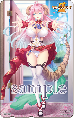 ドラゴンに会える、ドラゴン尽くしのコンカフェ ―― その名もドラ・コンカフェ。 店名も『リュミエール』と正式に決まり、 祖竜マルマリディア・ドット・フィアバーン様の伝説がまたひとつ異界の地で産まれたのです……。 「さすがです、リディア様!」 ですが、ドラゴンの生き様というのは、目標をひとつ達成すれば終わりというわけではありません。 私とリディア様の 愛の巣 コンカフェに ―― 不・穏・襲・来! 妹弟子であり七王竜が1座でもあるアルモラート・ミルミディアがやってきたのです。 彼女は語ります。 自分より先にやって来た七王竜のひとり、パスララディアを連れ戻しに来た ―― と。 ひとりだけでも 厄介 手のかかる妹弟子がふたり同時にやってきた!? 私とリディア様の甘い一時を邪魔するなど……! 早速リディア様のフィギュアを闇販売しているパスララディアを捕縛。 もちろんフィギュアは全て 入手 没収処分させていただきました。 そして、フィアバーンに帰るための魔力が溜まるまで、仕方なくふたりにもドラ・コンカフェで働いてもらうことにしました。 これで余裕ができて、リディア様との時間が増えると思ったのですが……。 そこはさすがのリディア様も手を焼かれた七王竜たちです。 次々と巻き起こるトラブルにゆっくりしている暇もありません。 アルモラートは可愛いだけで店中を染め上げようとするし……。 パスラはリディア様であの手この手で金儲けをしようとするし……。 ああもう! まったりのんびりコンカフェライフはまだまだ遠そうですね。 ■ テレカ画像 ![]() ■ CG