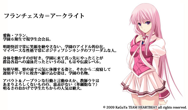 明朗快活でマイペースな学生会会長、フランチェスカ。