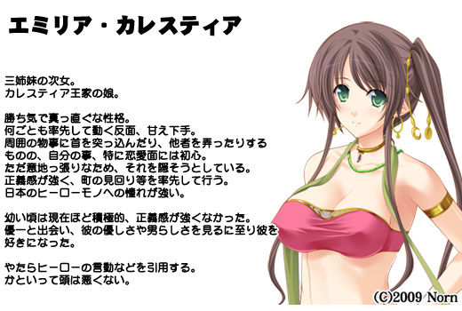 彼女たちに迫られ、主人公は気心の知れたオテンバ姫エミリアを選ぶ。