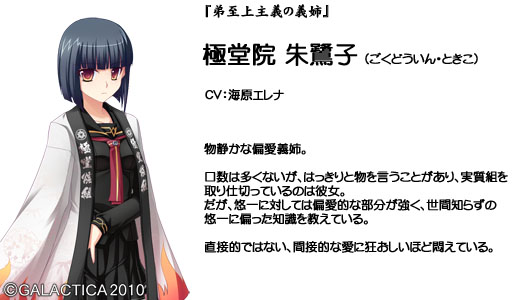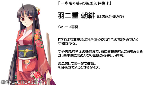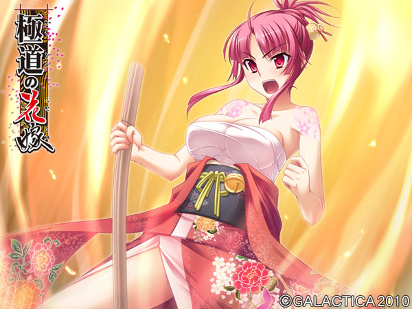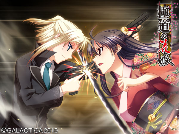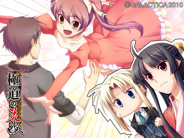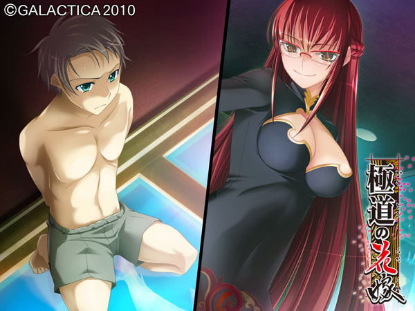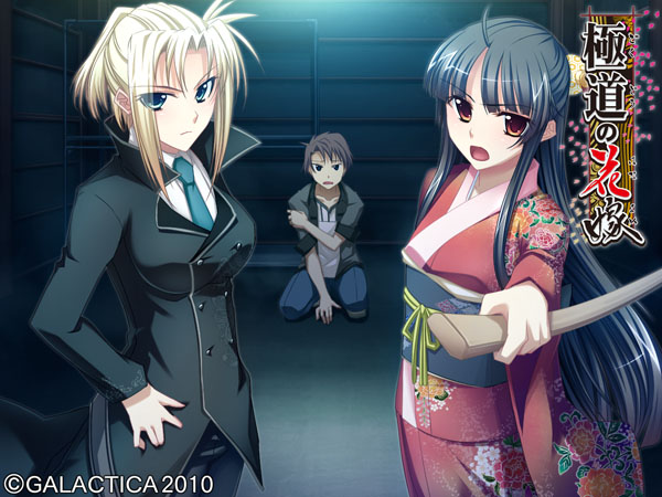 その名を聞けば、そこらのチンピラは愚か裏社会の親分衆や政財界のお偉方まで震えあがるという伝説の一大極道一家だ。 ……とはいえ、それも所詮は昔の話。 今の平和な世にあっては、S県K市にて細々と銭湯を営む、ただの一般家庭。 極堂院の長男・悠一も、どこにでもいるただの一般人に過ぎない……はずだった。 だが、一人の少女の来訪をきっかけに状況は一変する。 彼女――朝緋は極堂院組の有力な分家筋、羽二重組の跡取りで昔ながらの篤い義侠心あふれる極道娘だった。 近年、一家の衰退により裏社会の箍(たが)がゆるんでいるという危機感を抱いた朝緋は今こそ宗家を復興させるべしとの使命感を帯びて極堂院家へやってくるのだった……。 ■ CG