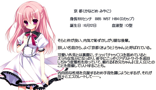 そらの親友で、ちょっと恥ずかしがり屋な『京 都(かなどめ みやこ) 』。