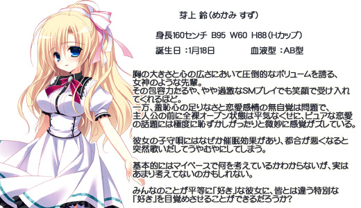 不思議な雰囲気で、おっとりした先輩、 『芽上 鈴(めかみ すず) 』。