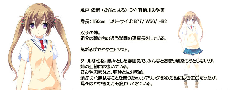 さらに ifストーリーとして、人気の高かったサブヒロイン・姫城ほたると時雨佳奈子の新たなシナリオも追加。