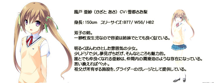 天音ルート後の、天音とのその後や過去のソアリング部 (天音、達也、イスカ) を描く 「ソアリング部ビフォア」 を収録。