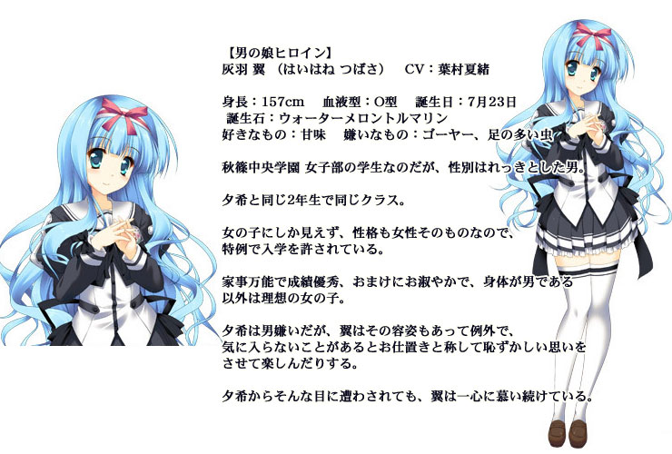 男の娘の名前は 灰羽翼 (はいはね つばさ)。