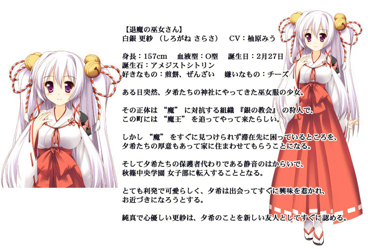 ある日、ふたりは学園からの帰り道で、空腹で行き倒れていた巫女姿の少女・白銀更紗 (しろがね さらさ) を助ける。
