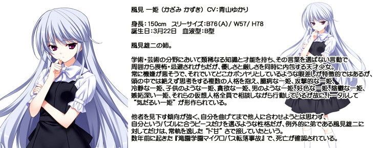 A man divides fruits picked up, and takes out the seed. The seed taken out is buried under ground. It will put out the bud, and become a gigantic tree, and to keep growing up after the man dies. The name of the gray tree is [Grisaia]. That tree is not necessarily the last one in the world. (男は拾った果実を割り、種を取り出す。取り出された種は、地に埋められる。 それはやがて芽を吹き巨木となり、男の死した後も成長を続けることだろう。その灰色の世界樹の名は “グリザイア” その樹は世界に一本とは限らない──) ──ずっと変わらないと思っていた学園生活。皆と同じ方角を向き、同じ足並みで歩んでいると、いつしか感じ始める錯覚。このまま皆と同じ道を行けば、同じ場所にたどり着けると信じてしまう。そしてふと気付いてしまう。人の数だけ歩んできた道があるように、人生に同じ道などないのだということに。 ──麻子、俺、もう5人救ったぜ?だから、もういいよな…? 俺、もう死んでも…いいんだよな…?わかってる、たとえ誰かを救っても、俺の過去はなかったことにはならない。それでも、笑って死ぬって、こういうことなんだろう? もう会えないかもしれない。 それでもずっと、思い出は胸にある。だがこの世の中、そんな言葉だけで満足するほど可愛らしい女ばかりではない。 それは、一人の少年が実感した、たった一つの真実──