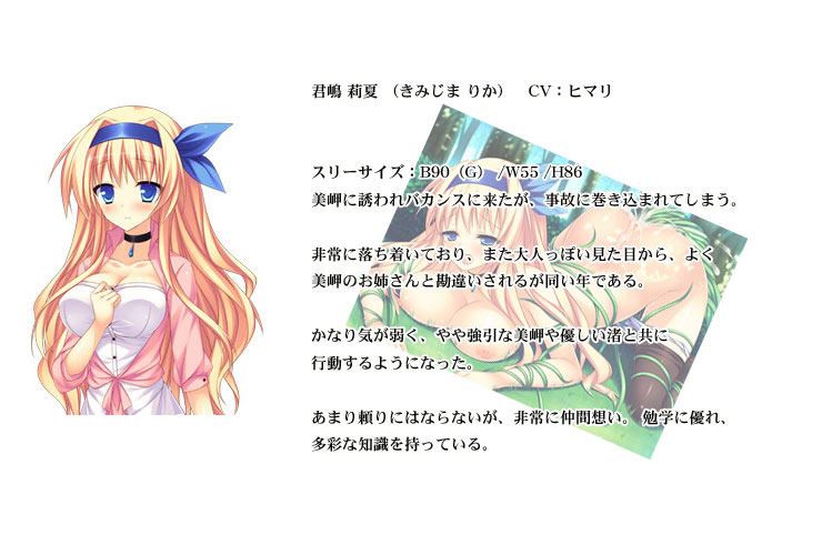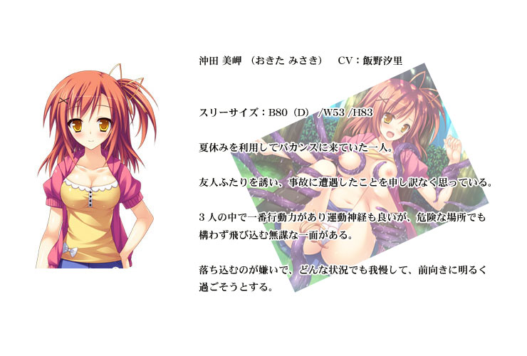 有意義な休暇を過ごすため、沖田美岬は友人の君嶋莉夏、雨宮渚と共にバカンスに来ていた。