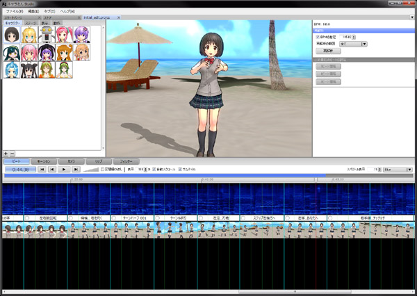 『キャラミん Studio』は、お手持ちの音楽ファイルを読み込み、キャラクターを自動で踊らせることができるミュージックビデオ作成ソフトです。 予め様々な3Dキャラクターが収録されていますので、音楽ファイルを用意して3Dキャラクターを選択すればこのソフトだけでミュージックビデオの動画が完成します。 ダンスの振り付けやカメラワークは自動で設定されますのでそれだけでも高品質な作品ができますが、ユーザー自身でカメラワークやダンスモーションの変更などができるので、こだわりのミュージックビデオの作成も簡単に行えます。 現在、アニメや各種音声合成ソフトをはじめとした3Dキャラクターを使った作品が数多く作られておりますが、従来のソフトウェアでは3Dモデルを踊らせようとすると、かなり高度な操作が必要になり、とてもハードルの高い作業でした。 『キャラミん Studio』を使用すれば、3Dの知識などを持ち合わせていなくても直感的に、しかも簡単に踊らせることが可能です。 『キャラミん Studio』は操作性や機能も充実させた他、キャラクターもキャラミんのキャラクター『許斐まい』やAHSのキャラクターだけではなく、インターネット社のキャラクターである『GUMI(ままま式V2/V3)』、静岡市清水区ご当地キャラの『百都かれん』、FOXCONN社のキャラ『ふぉっくす紺子』、福島県白河市の白河観光物産協会公認キャラクター『小峰シロ』なども使用可能になっておりますので、すぐにお楽しみ頂くことができます。 またキャラミんストアより様々なキャラクター、ステージ、モーションを追加(有償・無償)できるほか、キャラクターはpmd/pmx形式の3Dモデルも読み込むことが可能※なので、楽しみ方は無限大に広がります。 さらに、簡単に音楽を作成できるソフト『Music Maker Silver』、画像を簡単にしゃべらせることができるソフト『Crazy Talk5 SE』も付属、組み合わせて使うことでさらにクオリティの高いオリジナルの作品を作ることができるようになっております。 ※データによってうまく読み込めない場合があります。全てのファイルの取り扱いを保証するものではありません。 ●音楽を選択するだけで自動で踊る! 音楽を自動解析し、ダンスモーションやカメラワークが自動で設定されます。 ●キャラクター、ステージの変更 キャラクターやステージを簡単に変更できます。 ●ビートの編集 音楽のビート(拍子)を自分で調整、設定できます。 ●ダンスモーションの編集 200種類を超えるテンプレートから選択するだけで簡単に好みのモーションに変更することができます ●カメラワークの編集 テンプレートから選択の他、それぞれのカメラワークを細かく編集できます。 ●リップ入力機能 歌詞を入力することで、キャラクターを歌っているかのように口を動かすことができます。 ●フィルター機能 ライトブルームや色調変更、スクリーントーン効果など、様々な効果をかけることができます。 ●3Dモデルの読込み 3Dモデル(*.pmd/*.pmx)を読込み、使用することができます。※ ※全てのファイルの取り扱いを保証するものではありません。 ●動画のエクスポート そのまま作品を動画に変換するだけではなく、背景を単色にして動画にすることも可能です。 ●キャラクター、ステージ、ダンスモーションが追加できる キャラミんストアよりキャラクター、ステージ、ダンスモーションを無償・有償にて追加できます。 ■ キャラクター