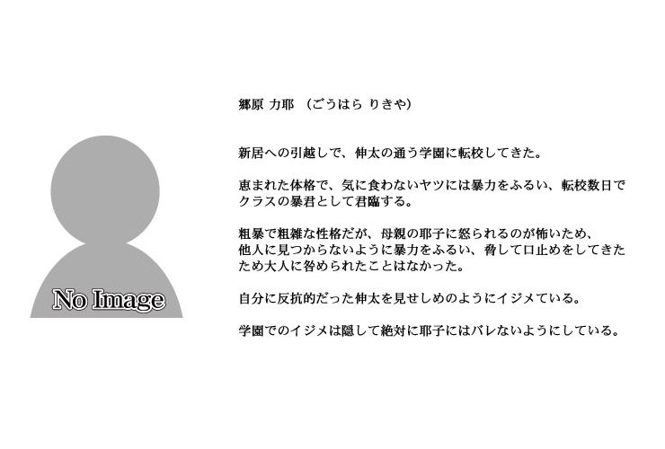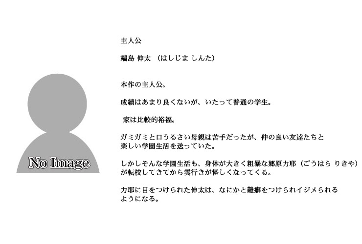 主人公・端島伸太(はしじま しんた)は楽しい学園生活を送っていたが、身体が大きく粗暴な郷原力耶(ごうはら りきや)が転校してきてから一変してしまう。 力耶の横暴な態度に意見した伸太は力耶に目をつけられてしまい、なにかと難癖をつけられてはイジメられるようになってしまう。 伸太は力耶の一番下っ端の子分にさせられてしまい、仲のよかった友達からもコキ使われるミジメな毎日に、力耶への復讐を考える。 ある日、見知らぬ美人のお姉さんに怒られて小さくなっている力耶を見かける。 その美人が力耶の母親だと知った伸太は、復讐のターゲットを力耶の母親、郷原耶子(ごうはら やこ)へと定めるのだった……。 ■ CG