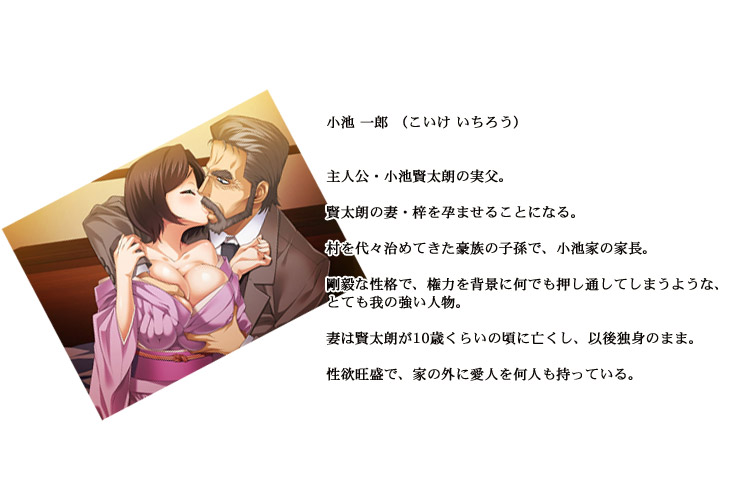 世継ぎを作るためにやむを得ず、実父である一郎に妻の梓を抱かせることになる。