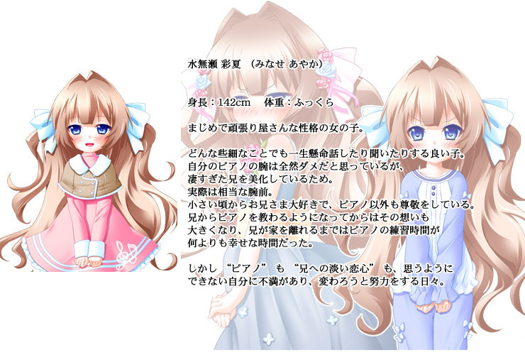 話を聞いてみると、どうやらピアノのコンクールが怖くて逃げ出してきたらしい。 腕の中で泣いている彩夏の背中を撫でながら、ひとつの決断をする。 「よし! 俺の得意分野を駆使してなんとかしてあげよう!」 幸い、ピアノには苦い思い出がありつつも、それなりに心得はある。 そして、もっとも得意な分野、それは エロいこと。 だって彩夏可愛いでしょ? ちっちゃい女の子可愛いでしょ? ヤるしかないじゃん !! 妹である彩夏が嫌がらないか一抹の不安を感じるが、あの子はどうも俺を美化・過大評価しているようだから大丈夫だろう。 妹のため、という本音であり建前でもあり、そしてエッチなことがしたいという本能のもと、一大プロジェクトが動き出した。 ■ CG
