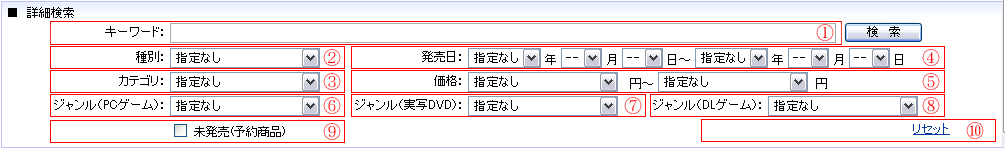 ・左右、両方の項を入力した場合は、その間の期間発売(予定)された商品を指定します。