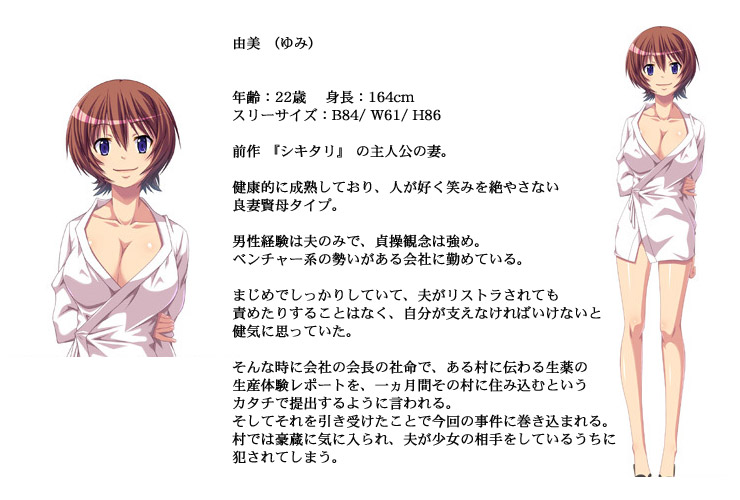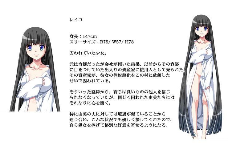 古の昔から、時の権力者に女を差し出すのをシキタリとすることで生き残ってきた村。 俺はそのシキタリを守る役を儀助から託された。 名前は豪蔵。 そうとは知らず、一組の夫婦が罠に掛かった。 蔵座敷の檻の中、囚われの身のままで、妻、そして一人の少女と民俗学を調べる女子大生、村人の片棒を担ぐかたちで性行為に耽る主人。 甘い草の香りに、恥ずかしがりの妻が、何も知らなかった少女が、生意気な才女がその心と身体を淫らに溶かされていく中、俺はそんなふたりをただのメスに仕込んでいく。 人妻との激しいセックス、少女の処女貫通から始まって、口唇奉仕、3P、集団プレイ、潮吹きに放尿、拘束したままのプレイ…… 仕込みがエスカレートしていくに従い、性欲に開花した3匹のメスは誰のモノでも見境無く、男性器にむしゃぶりつくようになっていく。 そんな3人を調教しながら俺は、今日もシキタリを守っていく……。 ■ CG