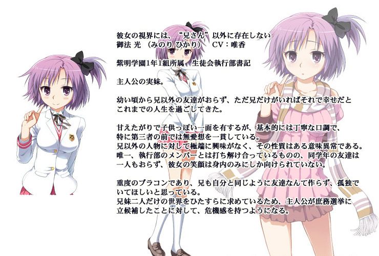 一方、クラス内でも孤立していた主人公は、怠惰な学園生活に終止符を打つため、臨時庶務選挙への出馬を決意する。