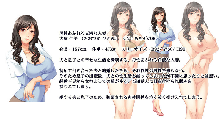 夫の一雄と息子の正樹を、心から愛する優しい人妻・大塚仁美。