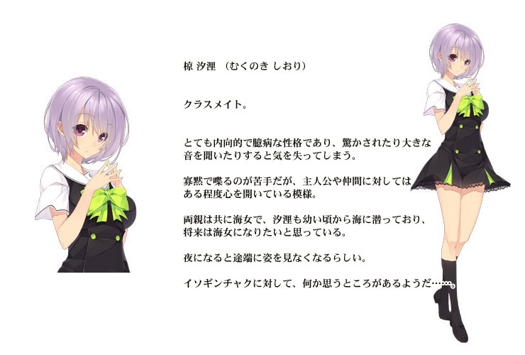 主人公・布野衛は、海に囲まれた孤島・篠ノ島で仲間と共に楽しく平穏な日々を送っていた。 幼なじみの深夜子、友人であるいすか、汐浬、凪、葵、一成と過ごす毎日は、衛にとって掛け替えのないものであり、いつまでも続くと信じて疑わなかった毎日であった。 衛は少女たちと様々な困難を乗り越え、より一層の絆を深め、青春を謳歌しようしていた。 その矢先、ある出来事を境に――彼は絶望の淵に立たされることとなる。 衛自身はそのことがキッカケで長い眠りについており、目が覚めた時にはかつての仲間はどこにもおらず、衛の傍には深夜子しかいなかった。 掛け替えのないものを失った悲しみに暮れる衛は、深夜子からこの島に古くから伝わる “伝承” のことを聞かされる。 ――大切な者を失ってから百日目の夜、その者と深く関わりのあった人間たちの想いを収束させ、この島を代々見守ってきた海神(わだつみ)に捧げることで、その者を蘇らせることができる。 その伝承にすがり付くことを決めた衛と深夜子は、失ったものを取り戻すために儀式の準備を始める。 準備の最中、衛はかつての仲間に想いを馳せながら、深夜子に失われた過去を語りだす。 彼の口から語られる数々の日常の断片。 その出来事は果たして、夢か現か―― ■ CG